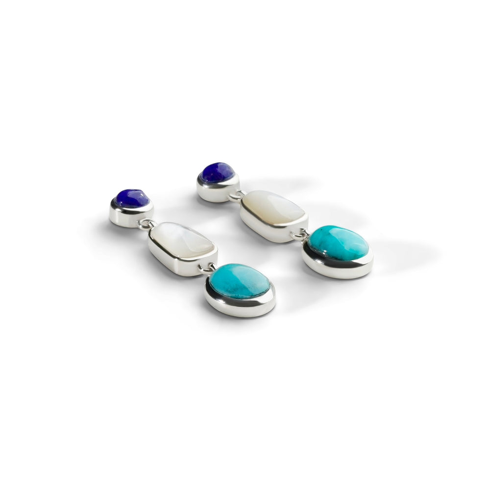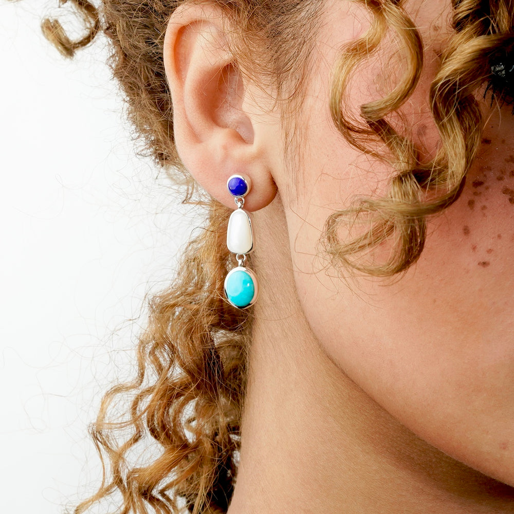 Colorful Life Drop Earrings, Sterling Silver, Turquoise, Lapis Lazuli, Mother of Pearl