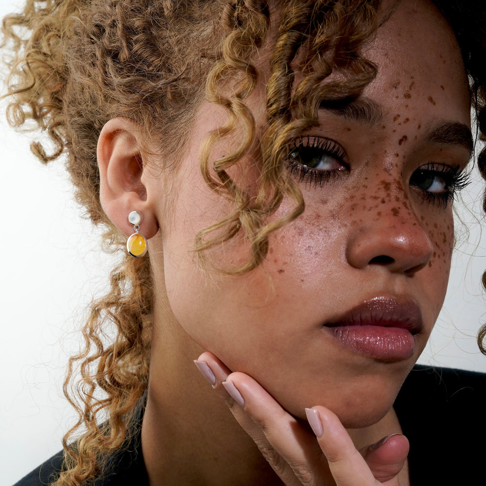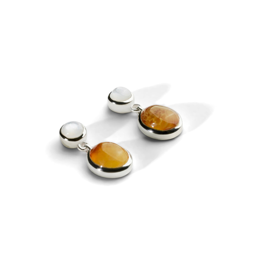 Colorful Life Short Drop Earrings, Sterling Silver, Amber, Mother of Pearl
