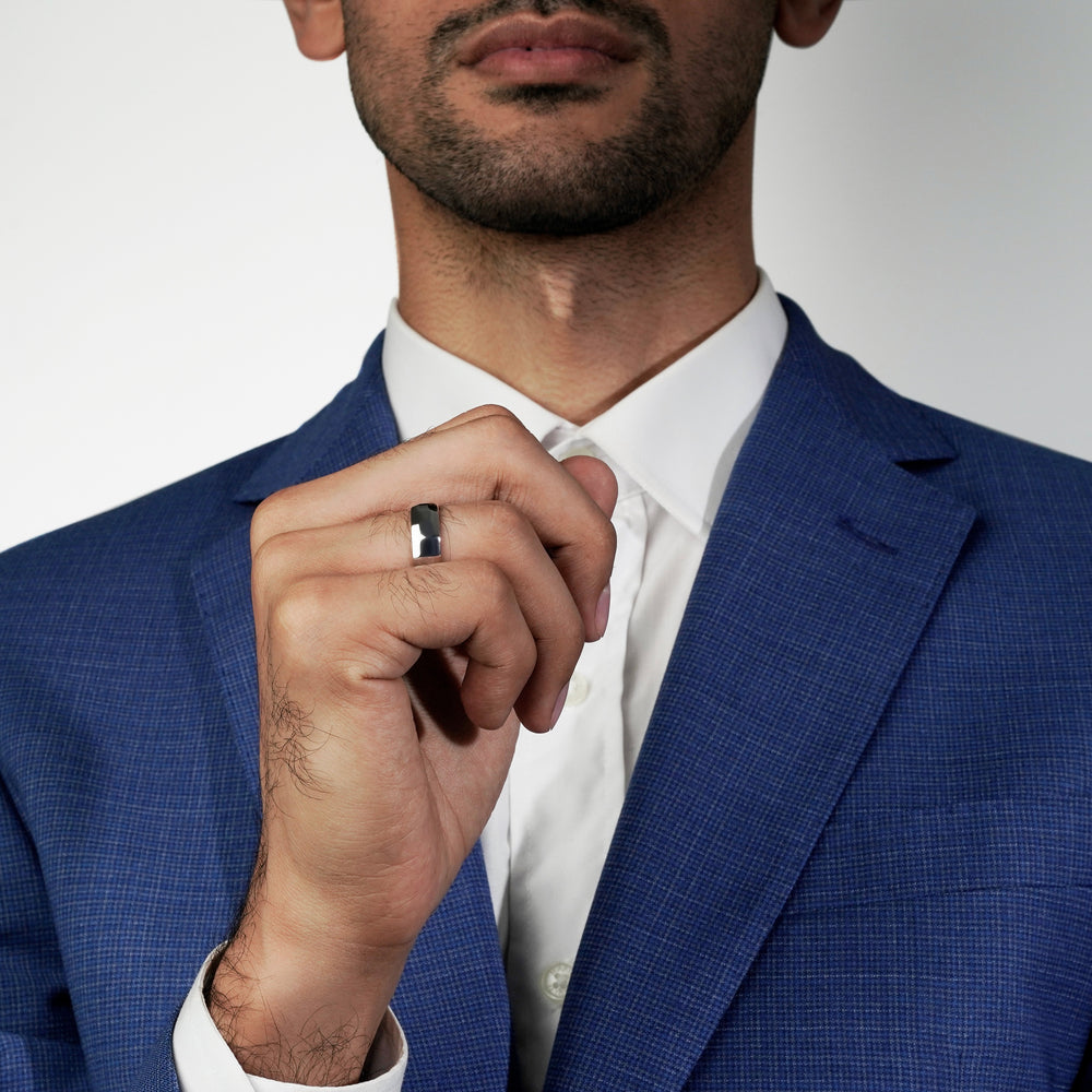 This modern engagement/wedding band for him captures the moment of commitment with sleek simplicity and timeless elegance, turning a special promise into an unforgettable memory.